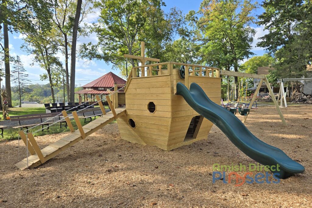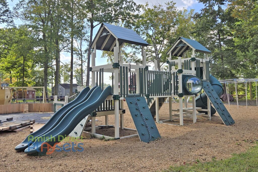 Chester Heights Camp Meeting added a big dose of adventure to their grounds with a Lincoln’s Labyrinth Commercial Vinyl Playground, a Commercial Swing Frame, and a charming Small Boat Specialty Theme Playset. Together, these pieces create a well-rounded play space where kids can climb, swing, and imagine endless stories—from navigating twisty slides to setting sail on make-believe seas.