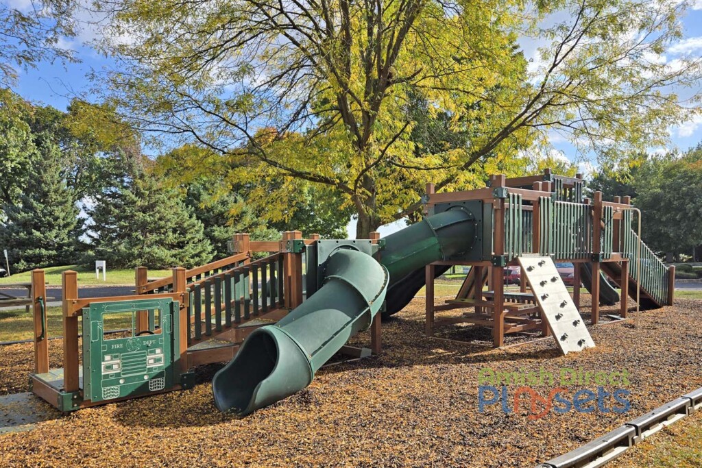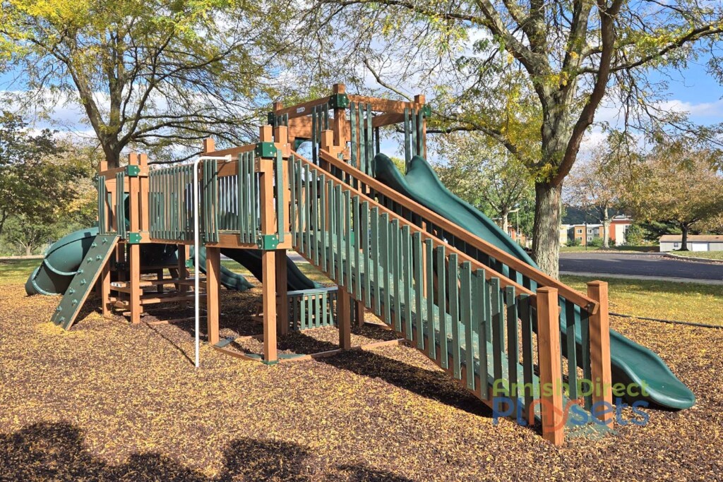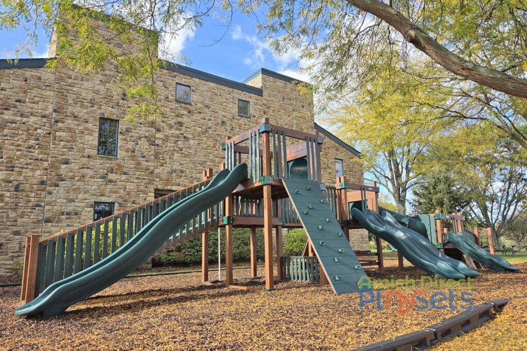 Covenant Fellowship Church has added a wonderful new feature to their outdoor space with a woodgrain vinyl playset from Amish Direct Playsets, complete with a standard border and un-dyed rubber mulch. The playset offers a fun and safe environment where kids can play, explore, and create lasting memories. Its durable, low-maintenance design ensures it will stand the test of time, while the un-dyed rubber mulch adds an extra layer of safety and a natural look. This addition has brightened up the church grounds, providing a welcoming space where the community can enjoy the outdoors and make the most of every moment.