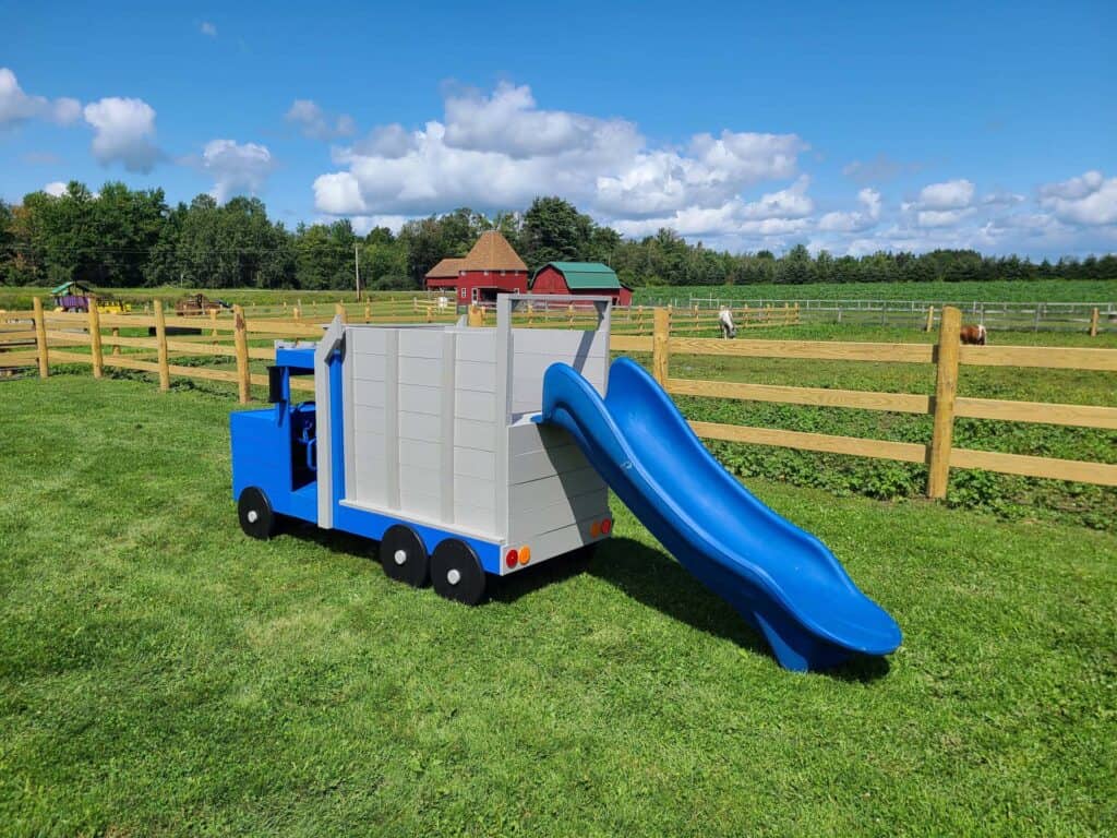 Critz Farms, an Agritourism destination, enriched their grounds with a selection of our Mini Specialty Theme playsets. Among them are the Mini Poly Fire Truck, Mini Poly Dump Truck, and our thrilling Monster Truck. These themed playsets offer young visitors a blend of fun and educational play experiences. Each playset has quickly become a highlight at Critz Farms, adding to the enjoyment and adventure of exploring this vibrant agritourism destination.