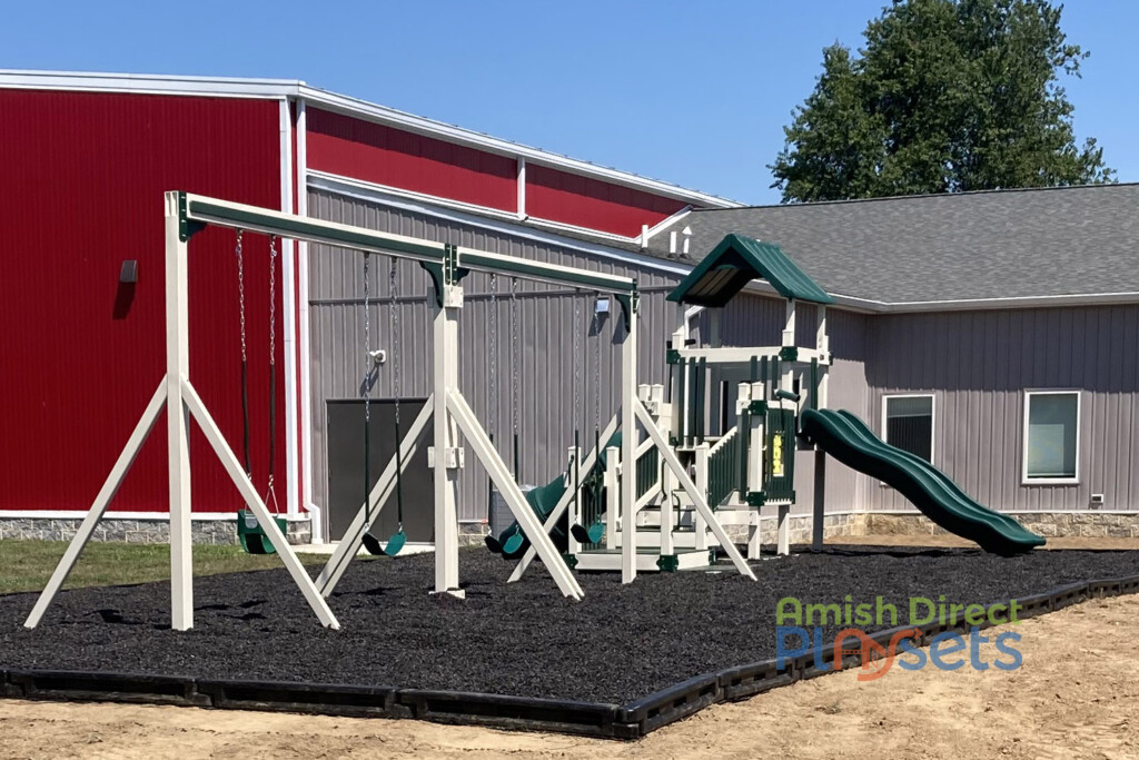 Crossroads Community Church has benefited from a reliable and low-maintenance play area thanks to their Rocket Launcher vinyl playset with a standard border and un-dyed black rubber mulch. The durable construction ensures long-lasting use, while the un-dyed rubber mulch offers a cost-effective, resilient surface that stands up to daily wear and tear. This combination provides a practical and safe environment for kids to play, ensuring the play area remains in great condition for years to come.