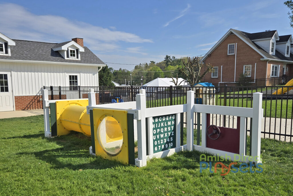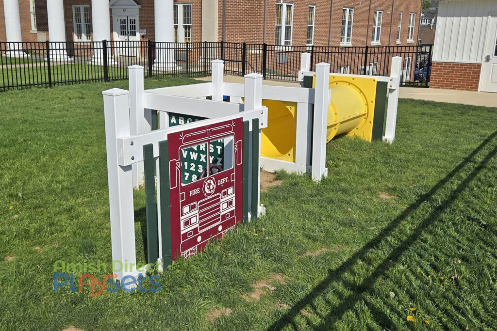 For younger children, the Dream Center offers a safe, ground-level experience featuring a 6’6” tunnel, bubble panels, Tic Toc Clock activity panel, and a 2’ x 5’ lemonade stand—perfect for interactive and imaginative play. Built with durable, commercial-grade materials, this combination ensures a long-lasting, low-maintenance playground that supports kids of all ages.