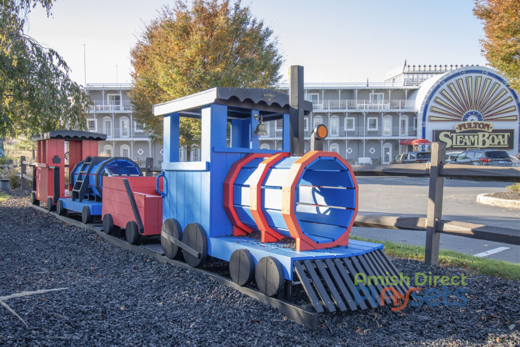 Fulton Steamboat Inn has enhanced its family-friendly atmosphere with the Model 900 Poly 4 Piece Train Set, a vibrant and colorful addition that captures the imaginations of children and creates a cheerful, inviting environment. Made from durable, low-maintenance materials, this playset offers lasting enjoyment while maintaining a fresh, appealing look with its vivid, eye-catching colors. It provides a delightful experience for kids, encouraging creativity, play, and social interaction, making it a standout feature for families visiting the Inn.