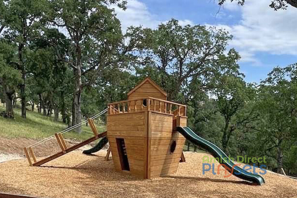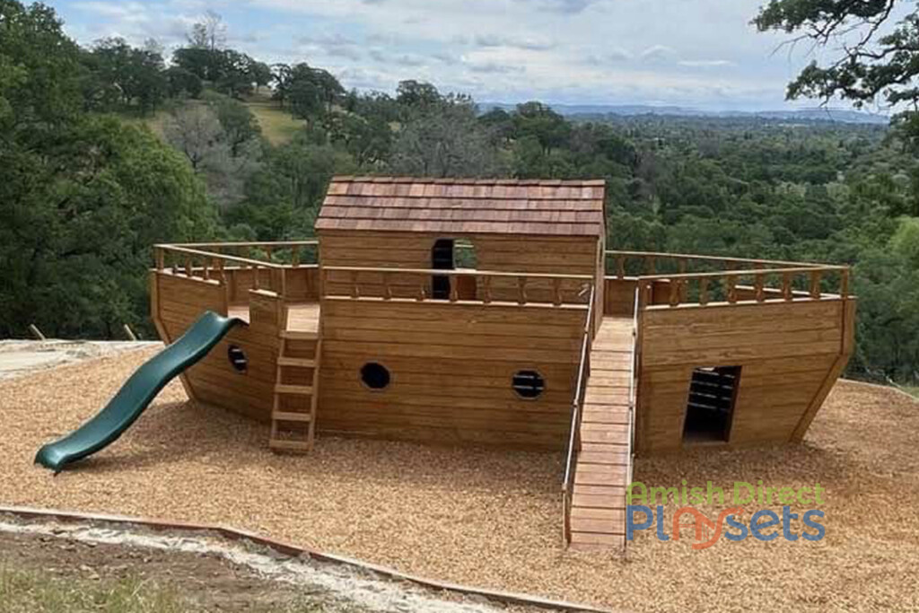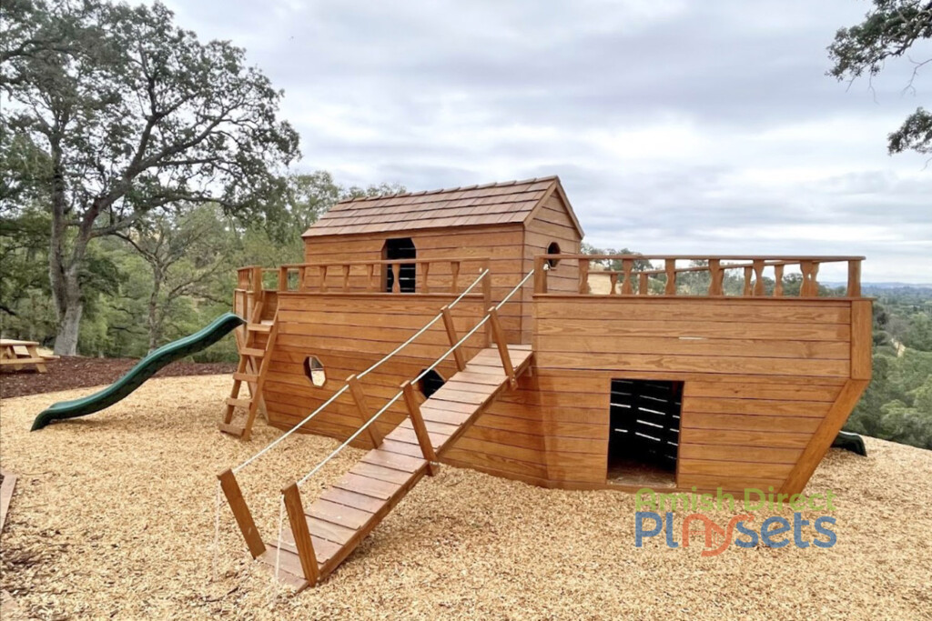 Granite Bay SDA Church chose a Large Ark Specialty Theme Playground from Amish Direct Playsets for their new play area. This unique and captivating playground, designed to resemble a large ark, provides a fun and imaginative space for children. It has transformed the church’s outdoor area into an engaging and delightful environment for kids to enjoy.