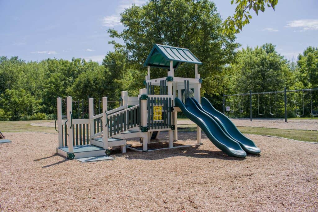 Hamlet-Waterford Greene HOA collaborated with Amish Direct Playsets to install two impressive playgrounds: a custom vinyl playground and the ASTM-compliant Rocket Launcher Vinyl Playground. These additions provide a diverse and exciting play environment for the community’s children, enhancing the neighborhood’s appeal and offering safe, fun spaces for active play and socialization.