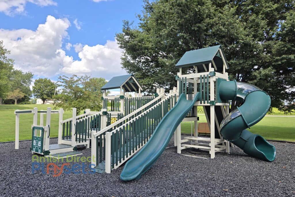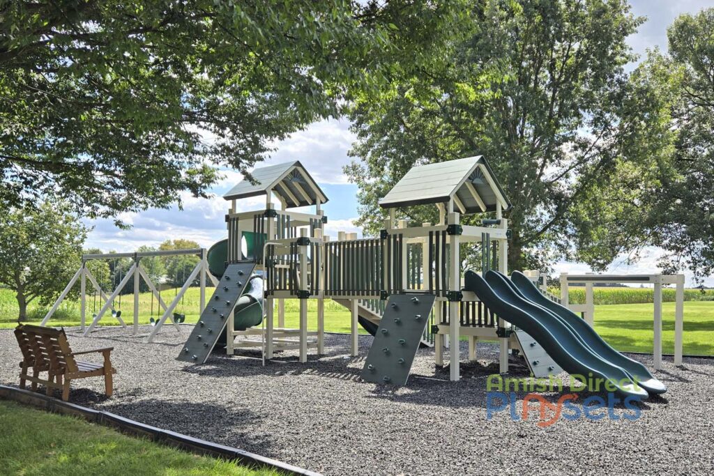 Hempfield Church of the Brethren transformed their outdoor space with a customized Lincoln’s Labyrinth Vinyl Playground and an 8-foot, two-bay Commercial Vinyl Swing Frame, creating a dynamic play area for kids of all ages. The combination of climbing, sliding, and swinging options ensures hours of active, imaginative play.