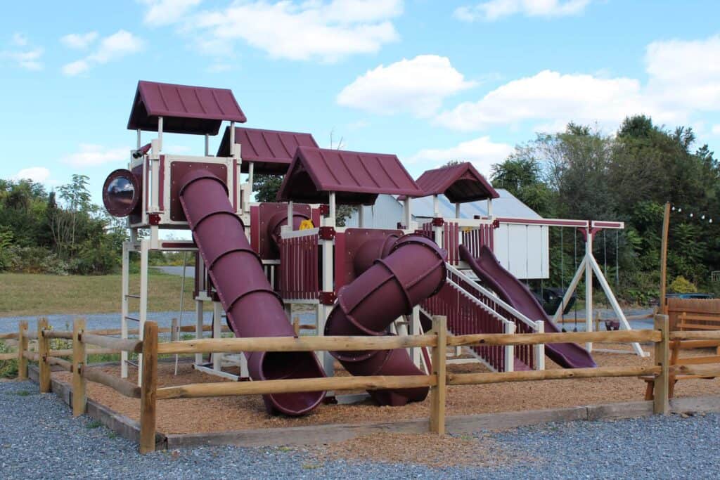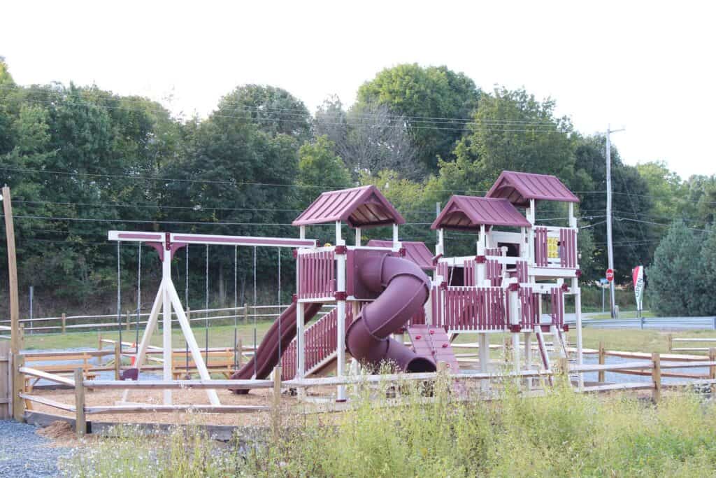 Plum Creek Farm invested in a custom-designed Vinyl Playground from Amish Direct Playsets. This playground enhances their farm environment, offering a safe and fun play area for young visitors. The custom design reflects the rustic charm of Plum Creek Farm, providing children with a memorable and enjoyable experience while exploring the farm grounds.