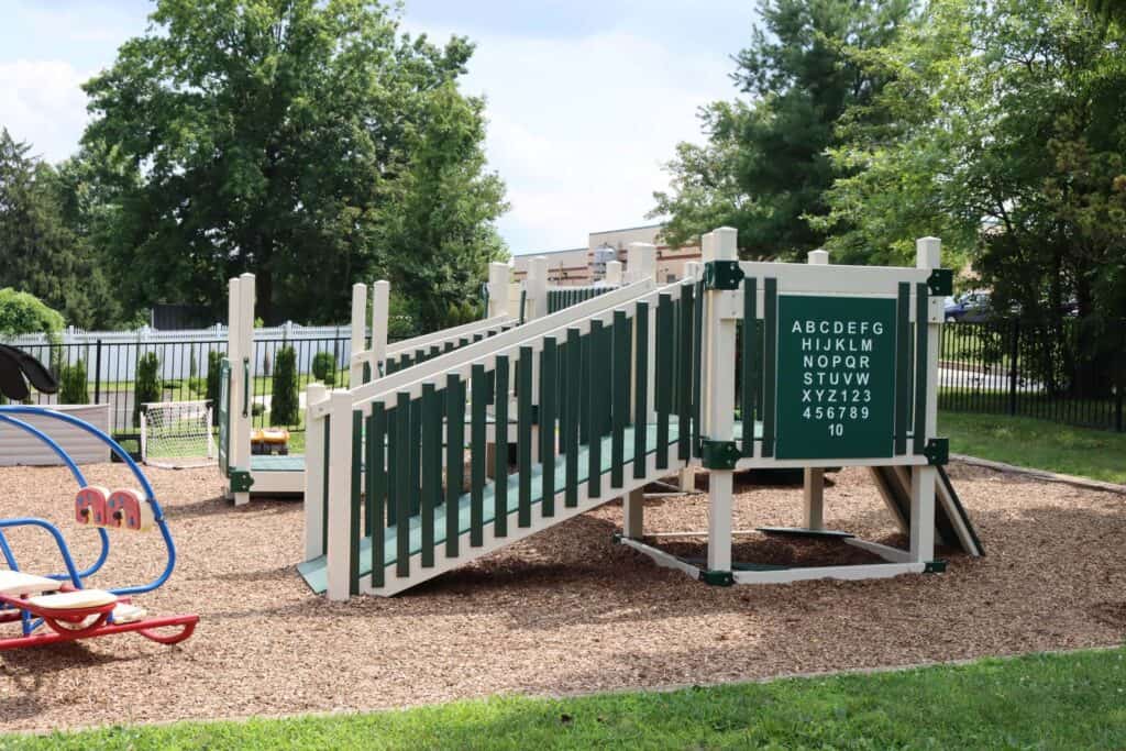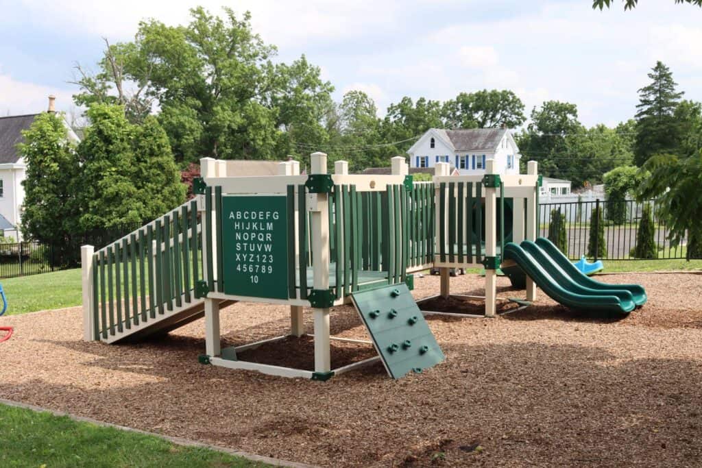 Providence Montessori School House collaborated with Amish Direct Playsets to install a custom-designed Vinyl Playground. This playground addition enriches the school’s outdoor learning environment, providing children with a safe and engaging space to play and explore. The custom design reflects the educational values of Providence Montessori School House, offering students opportunities for physical activity and social interaction in a stimulating setting.