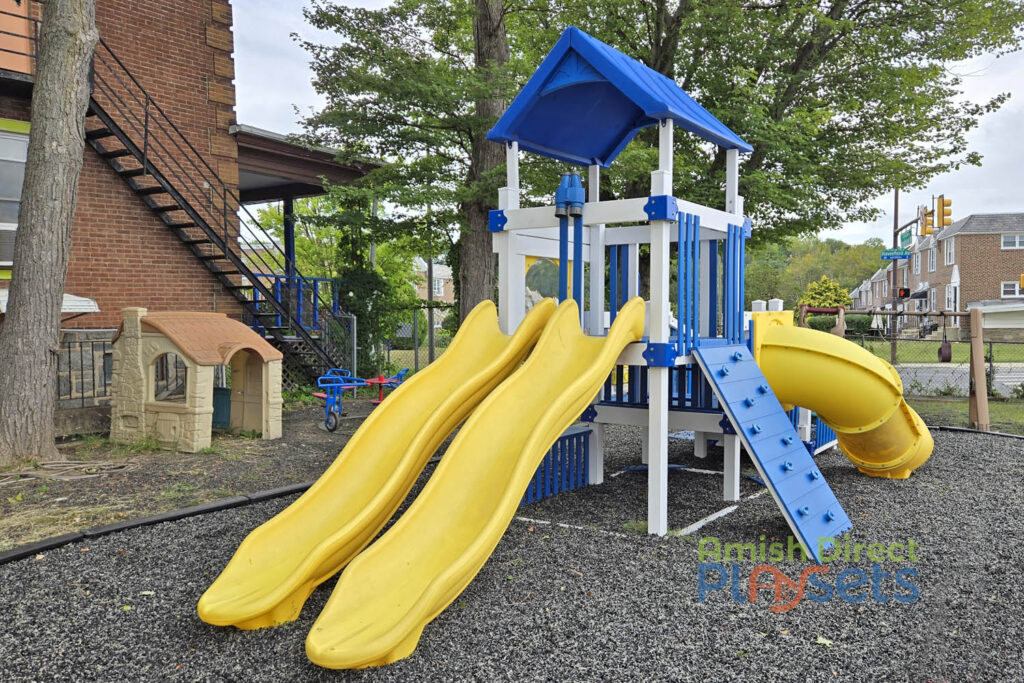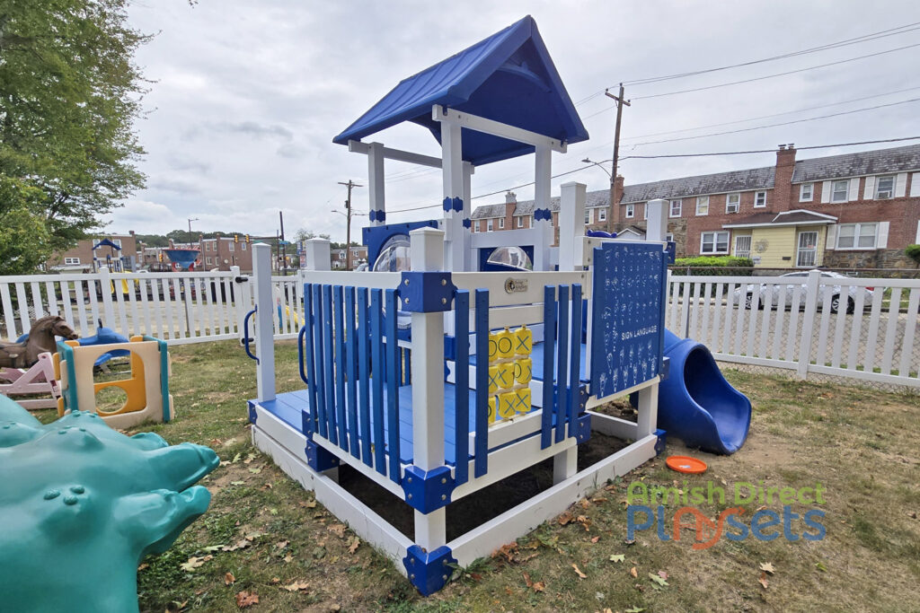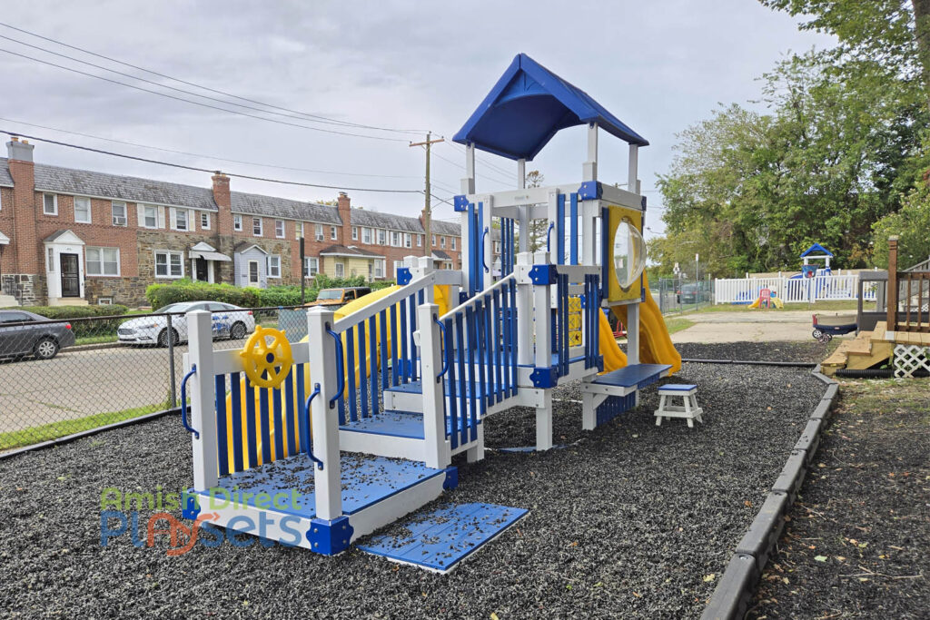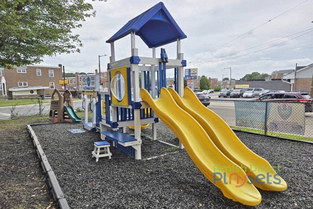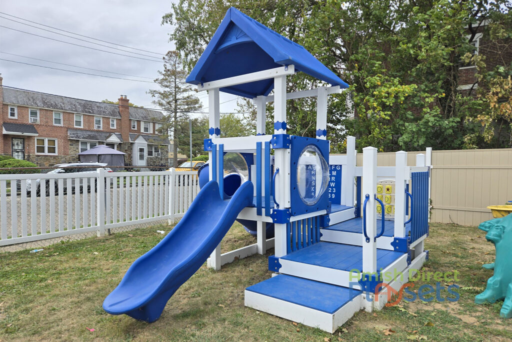 The Torre Academy created an exciting new play space with a combination of our Rocket Launcher Vinyl Playground (with slight custom modifications) and the Tiny Island Vinyl Playground. Together, these playsets provide a variety of climbing, sliding, and imaginative play opportunities, encouraging kids aged 2 – 5 to explore, challenge themselves, and have fun.