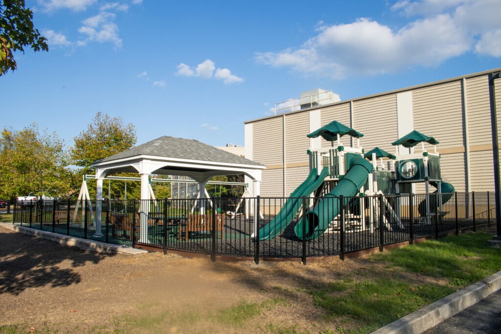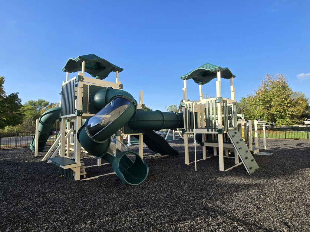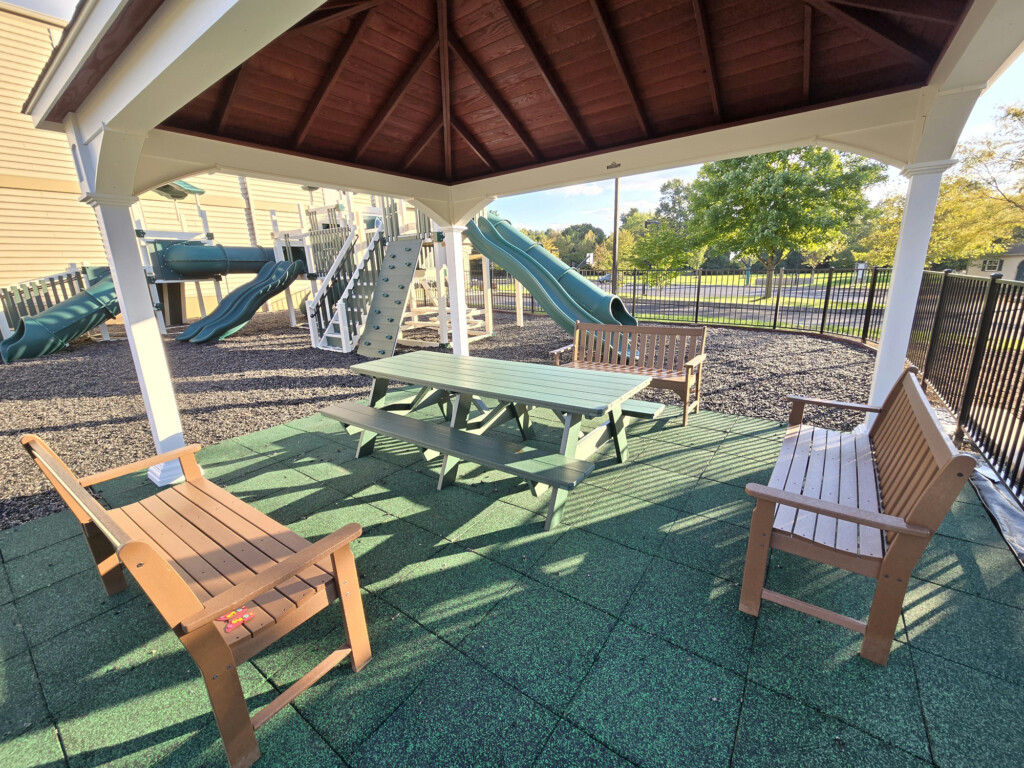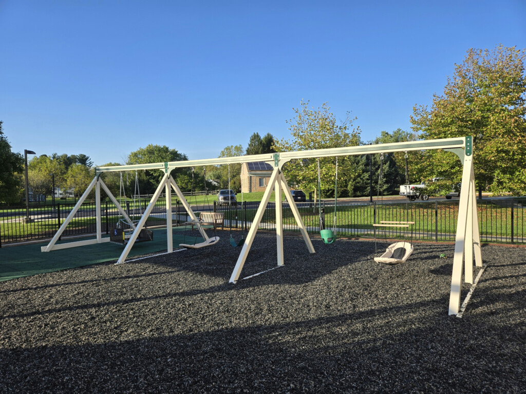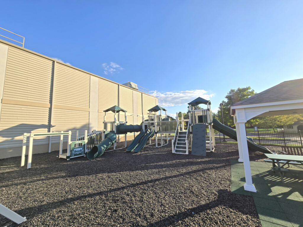 The custom vinyl playground installed at Willowdale Chapel – Kennett Square, paired with durable rubber tiles and un-dyed black rubber mulch, has transformed their outdoor area into a functional and inviting space. The playground’s thoughtful design combines long-lasting materials with safety-focused features, ensuring a secure environment that requires minimal upkeep. This addition has enhanced the chapel’s outdoor setting, providing a reliable and visually appealing area for recreation and relaxation that will serve the community for years to come.