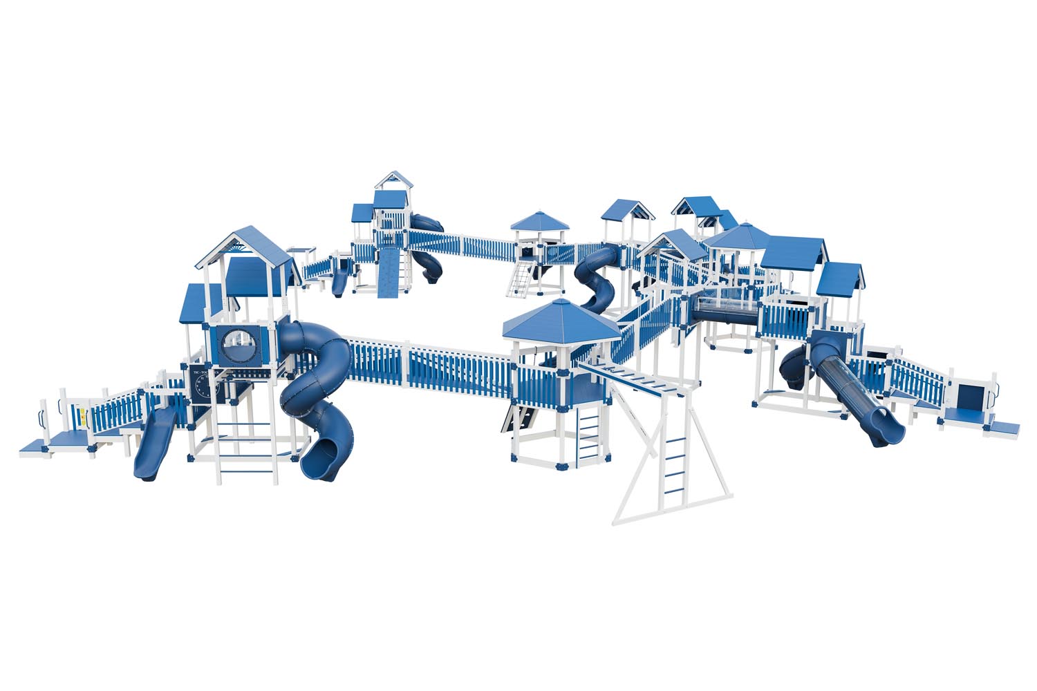 The Mighty Adventure is the largest and most impressive playset in our collection, built for limitless exploration and nonstop excitement. With four ADA-compliant transfer stations and multiple access points, it ensures children of all abilities can fully participate. Spanning multiple tower sizes—7.5’ x 7.5’, 5’ x 9’, and 5’ x 5’—this massive structure offers a wide variety of challenges and play opportunities.