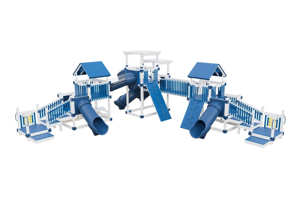 The Mighty Escape playset delivers a dynamic, inclusive play experience for children of all ages and abilities. Three towers with deck heights from 3’ to 7’ create a connected network of bridges and tunnels, offering endless paths for exploration and imaginative play. ADA platform first steps and transfer stations ensure easy access for every child.